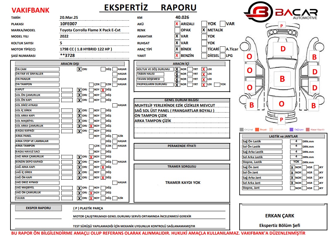 Toyota Corrolla Flame X Pack E-Cvt Ekspertiz Raporu