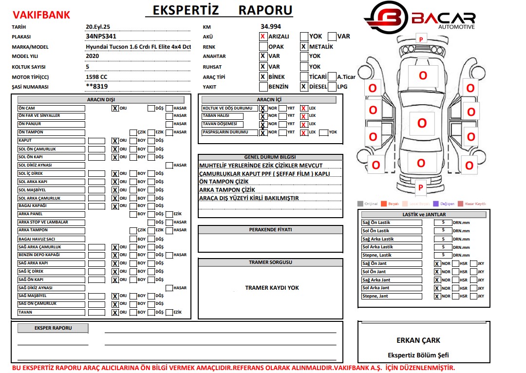 Hyundai Tucson 1.6 Crdı FL Elite 4x4 Dct Ekspertiz Raporu