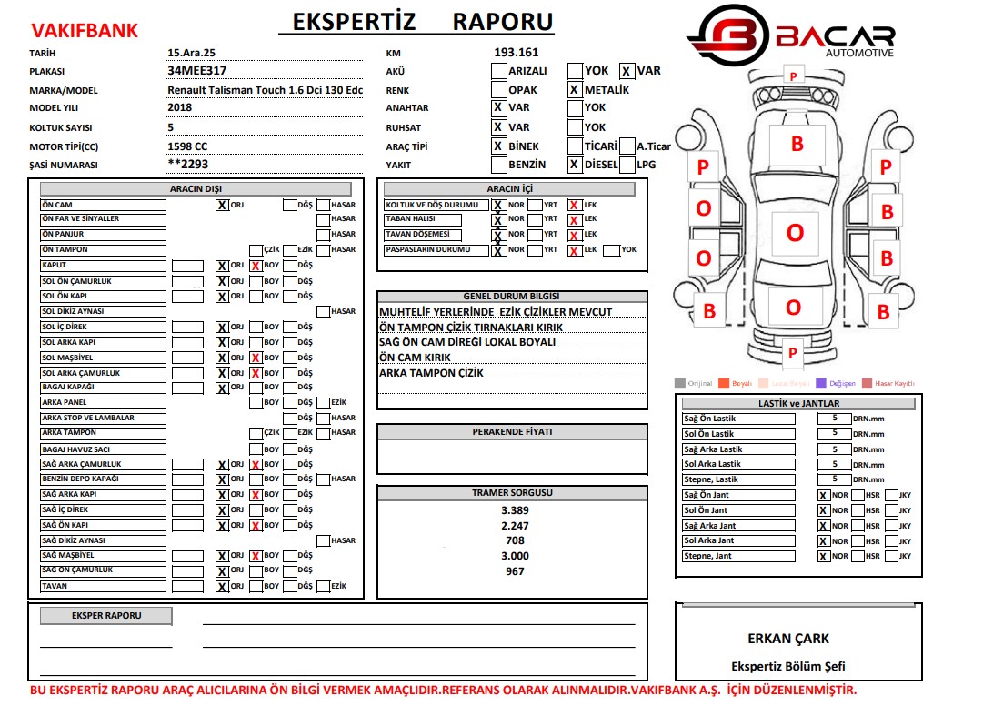 Renault Talisman Touch 1.6 Dci 130 Edc Ekspertiz Raporu
